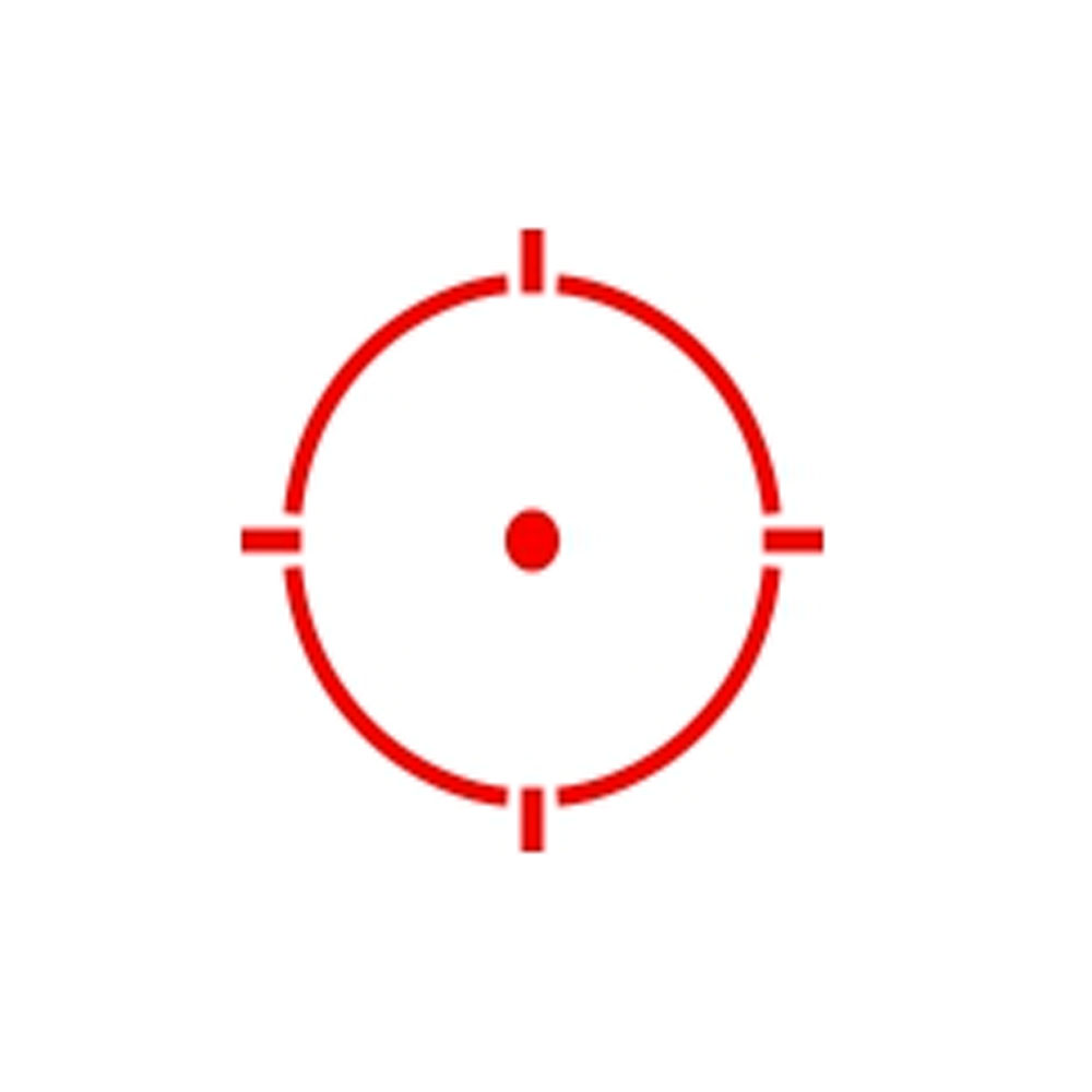 LED 分化图形由 2MOA 的中心点、65MOA 的圆环,以及指示水平 垂直的四条短线段组成。通过光学系统观测分划图形,在 100 米远的位置, 65MOA 的圆环直径近似等于 170cm。分划图形可通过按键切换。