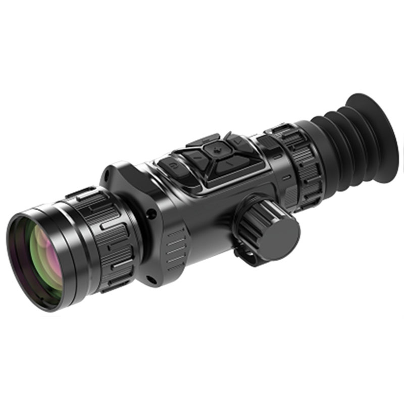 热像仪OLED高清屏;可在全黑、雨雪、烟、雾等情况下产生清晰的图像,也可在白天夜晚连续工作,同时具有穿透雾、烟及灰尘等颗粒的能力,昼夜两用的特点,可配皮卡尼汀导轨,手持外接屏等。